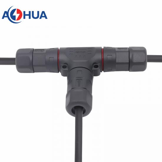1 in 2 out T connector 2pin 3pin 4pin waterproof ,screw fixing type conductor