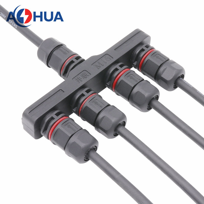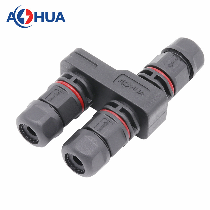 Complete assembly shown: splitter body, waterproof nut, sealing O-ring, mating plug