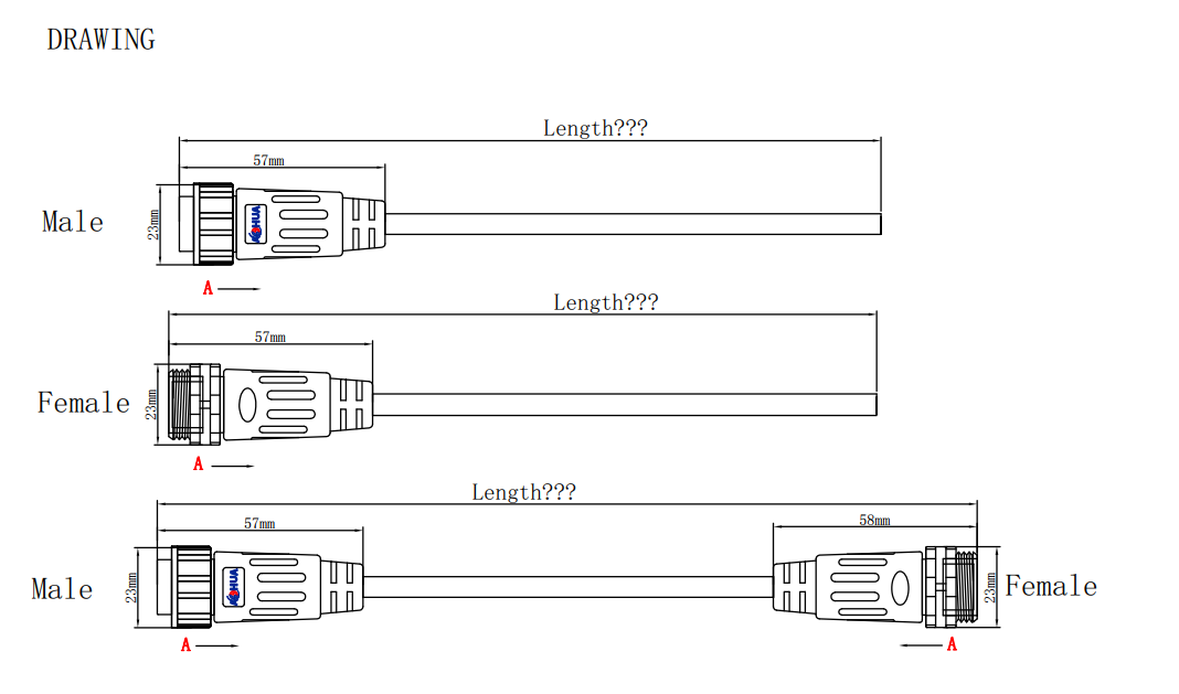 1. Nylon material connector pre-mold with PVC/rubber cable.