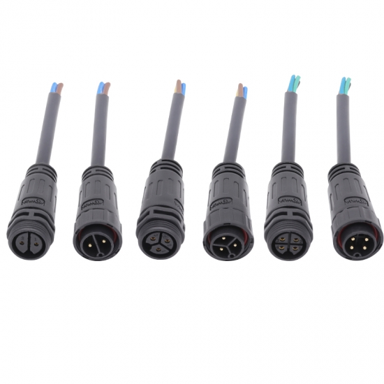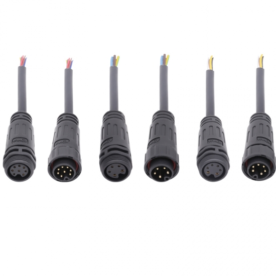 15A outdoor power waterproof molded cable male female 6 pin circular connector for garden lighting