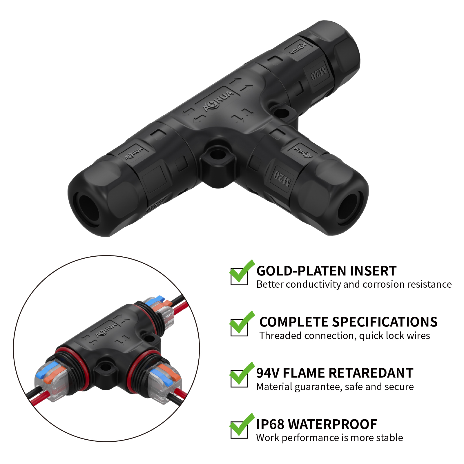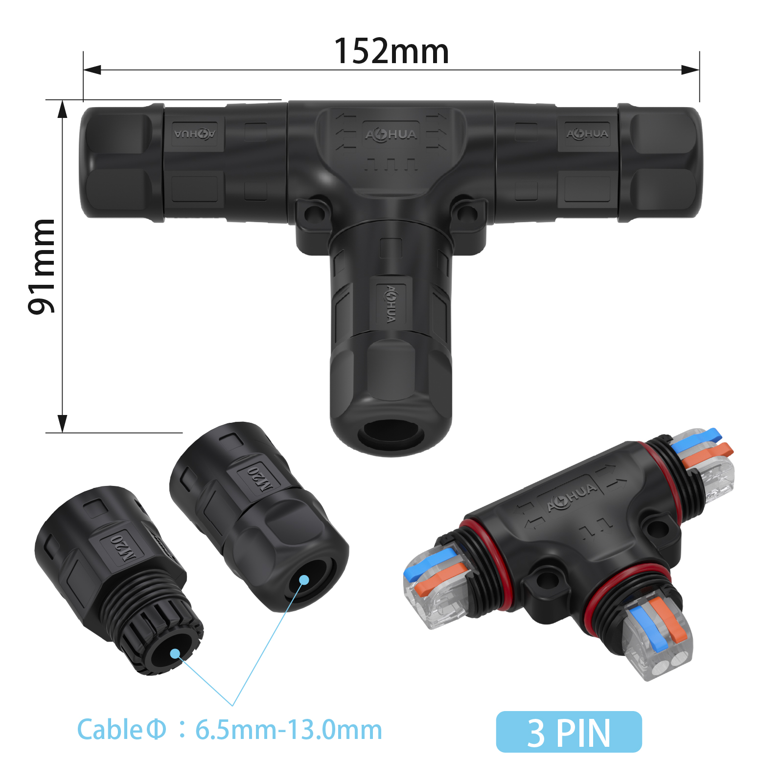 This is a ctrimp terminal T shape waterproof connector, it has 2PIN & 3PIN option for you to choose, whcin one would be choosed it is detemined the wire gauge, like 2PIN wire will choose 2PIN connector...