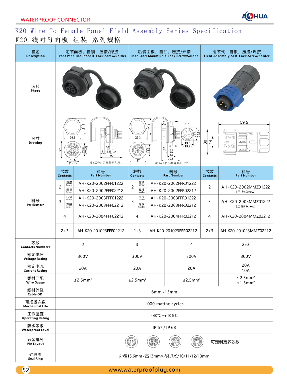K25 Assembly Panel Mount Cable Connector 2 3 4 Pin