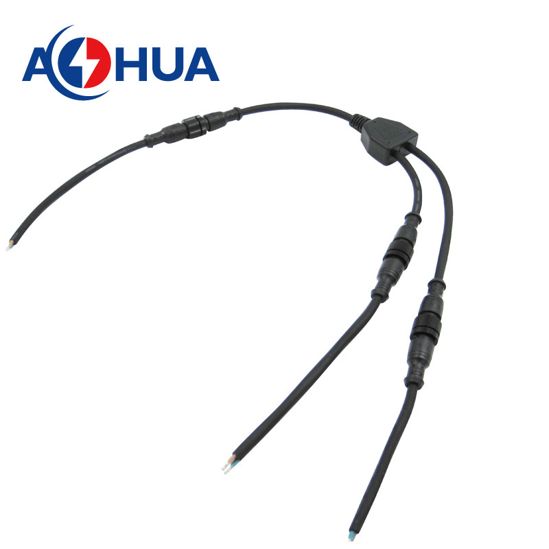 AOHUA provides a customized cable solution for M12 male-female connector extension cables for LED drivers with 1 to 2 Y-type 2 and 3 pin cable connections. These connectors are designed to provide a reliable and waterproof power connection for your LED lighting system, ensuring that your lights receive the power they need to operate efficiently.