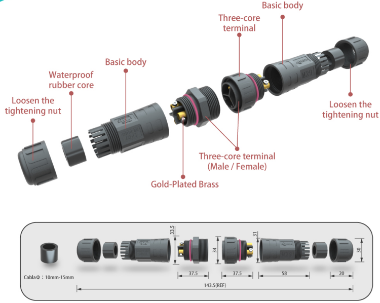 A suitable size of the seal ring can help the connector achieve better waterproof effect,