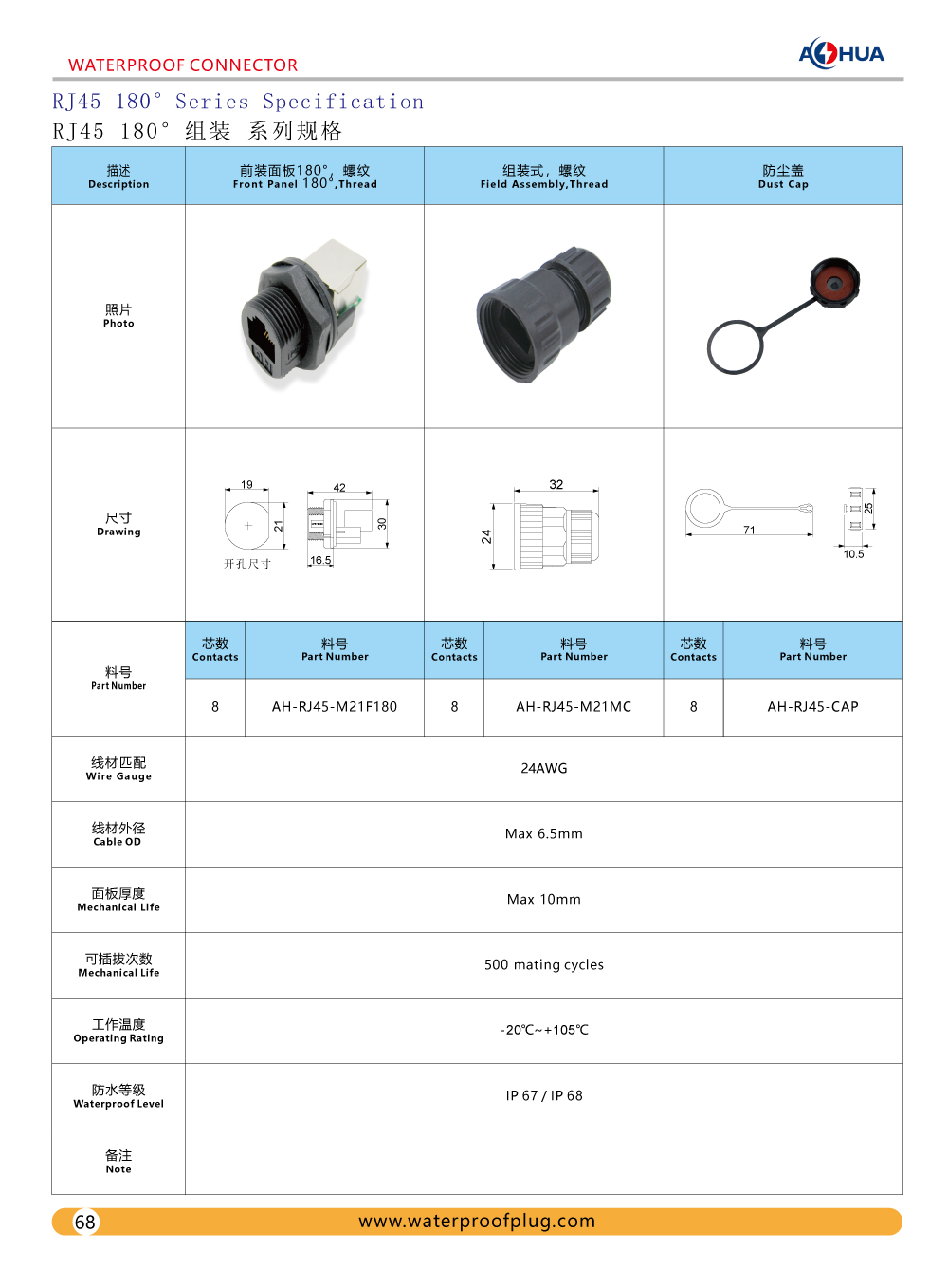 RJ45 Front panel series include RJ45 90/180 Degree and RJ45 with cable.