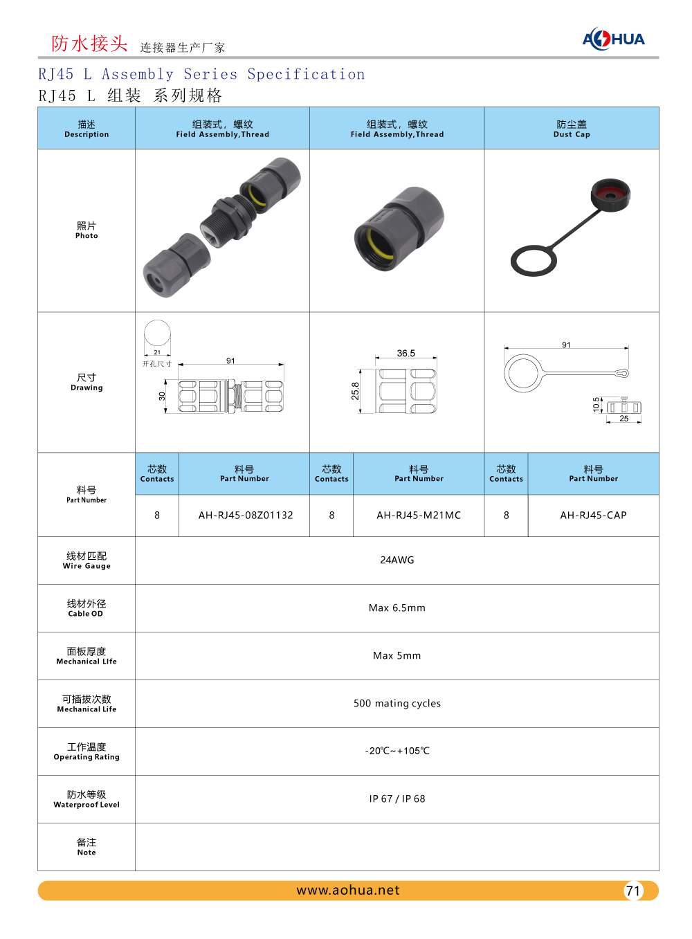 1.RJ45 is a assembly waterproof connectors are divided into RJ45 Front panel Type and RJ45 L Assembly /T assembly 3-ways splitter series.