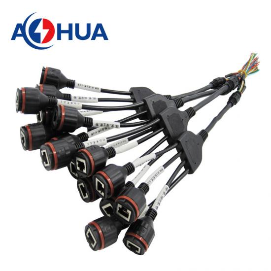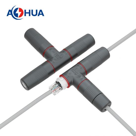 Aohua Assembly L/T type 3-ways splitter connector 90/180 Degree Panel type WaterproofRJ45 Connector IP67 with Ethernet Cable for Cat5e CAT6 24AWG