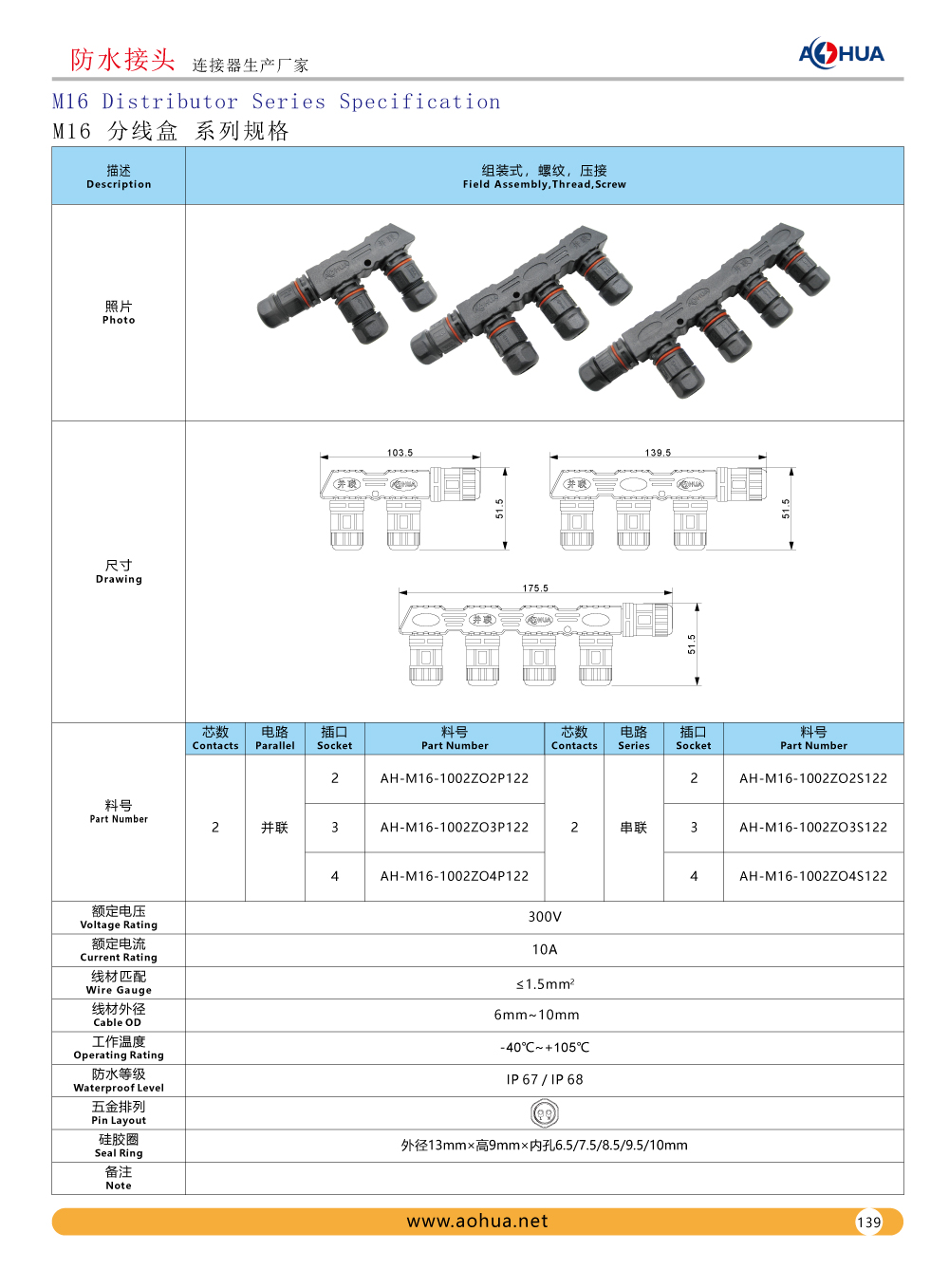 1.Assembly Series no gender Waterproof connectors include L assembly series T assembly 1 in 2 out 3-ways series and X assembly 1 in 3 out 4-ways series,and Assembly Splitter 1 in 2/3/4 out H/F Series.