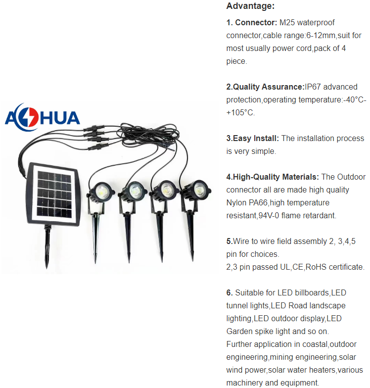 connectors are suitable for quick connection of garden and outdoor displays,floor heating,beacons,cruise ships,LED billboards,LED tunnel lights,LED street lights,external wiring,ect.