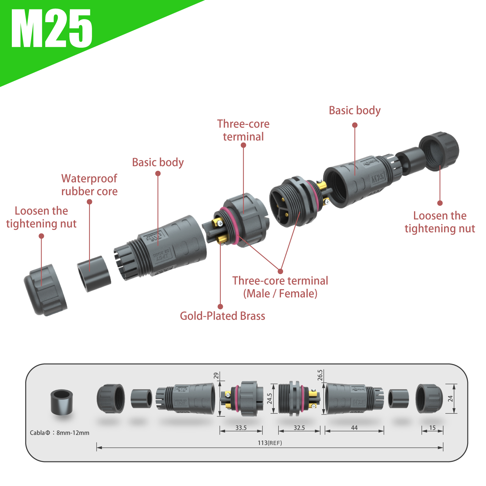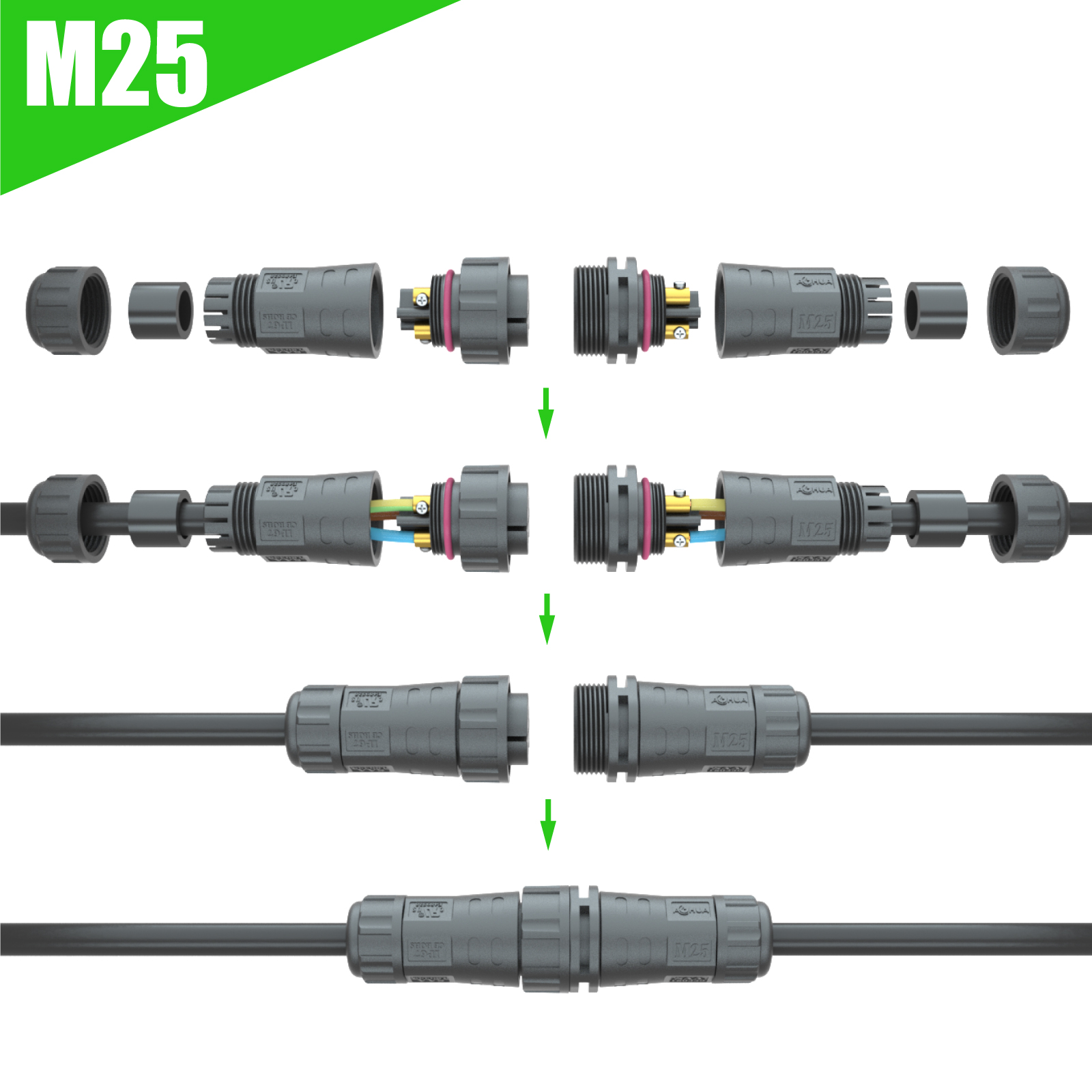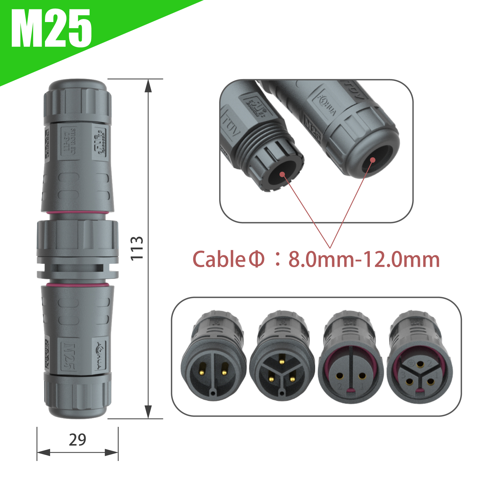 M25 Waterproof connector 2pin m25 male female ip67 connector