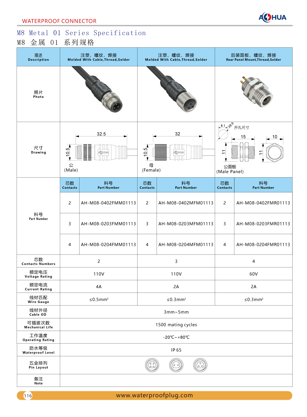 This is customized type connector,pls share more details with us before purchase. M08 Mini metal A code connector divided into wire to wire type and wire to panel type. 1.It is molded with cable connector.Injection molding with PVC cable type.