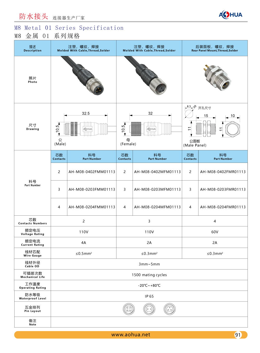1.M08-01 waterproof Metal connector is pre-wire male and female inline