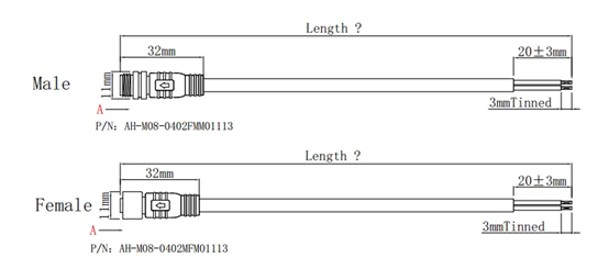 4. Cable length,such as:Male length 1000mmm,female length 500mm...
