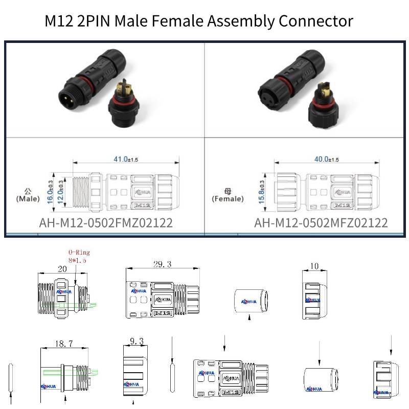 | Model Series | AOHUA M12 2-Pin Waterproof Connector |