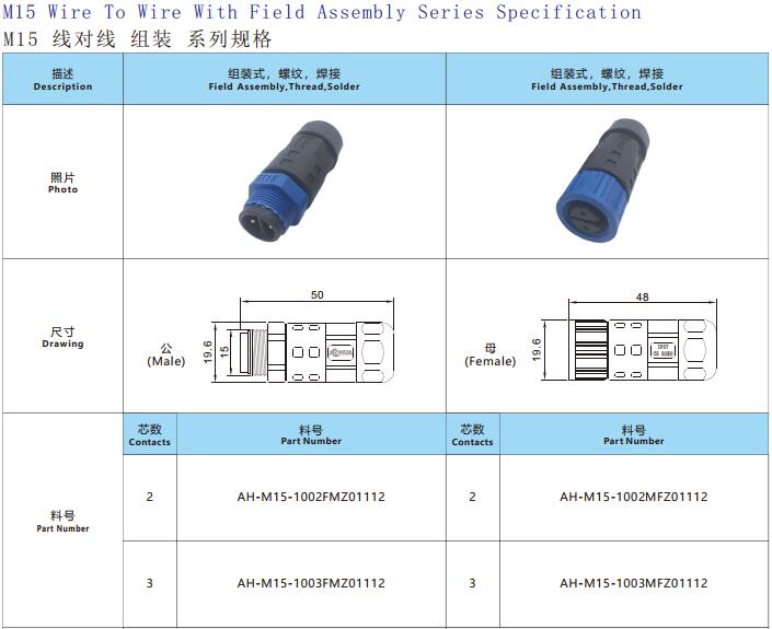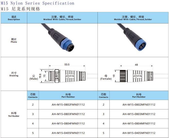 1. M15 connector, threaded butt assembly, simple to use and easy to install.