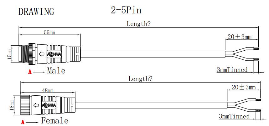 5. Length of each cable, eg: 300mm.