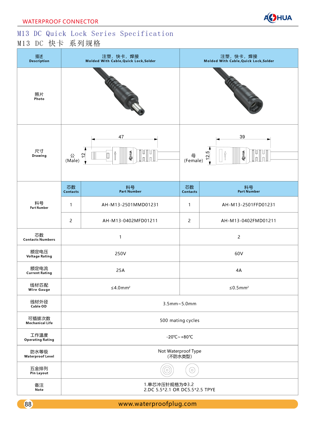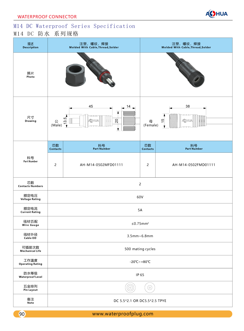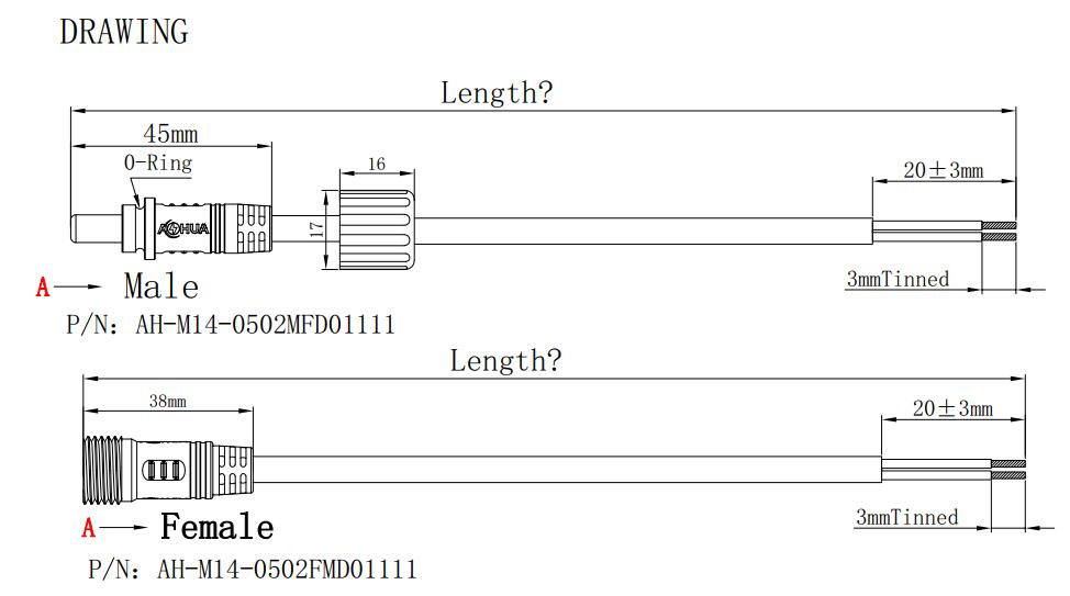 DC Waterproof M13 M14 and Design Drawing,Specification and Product Display