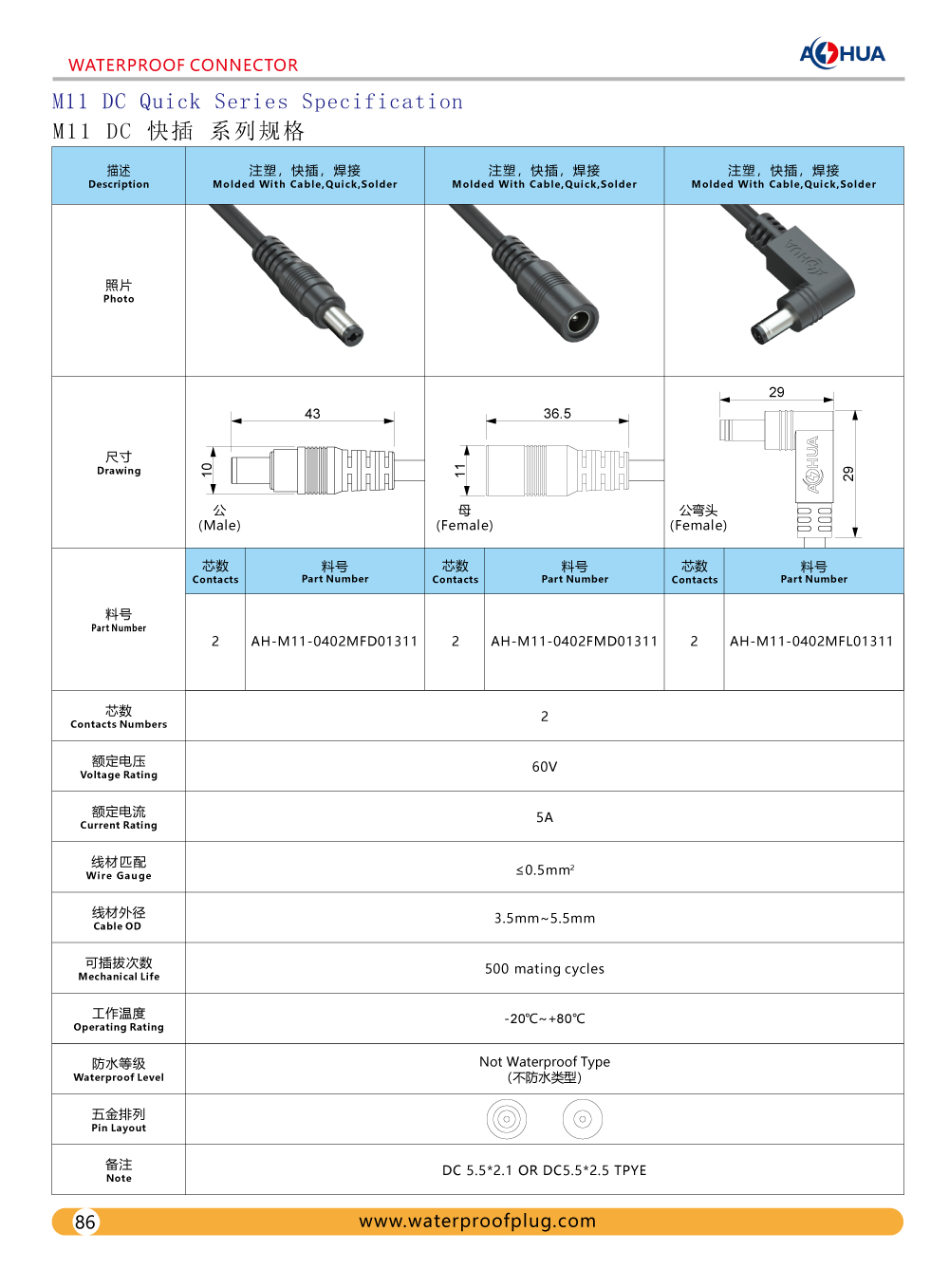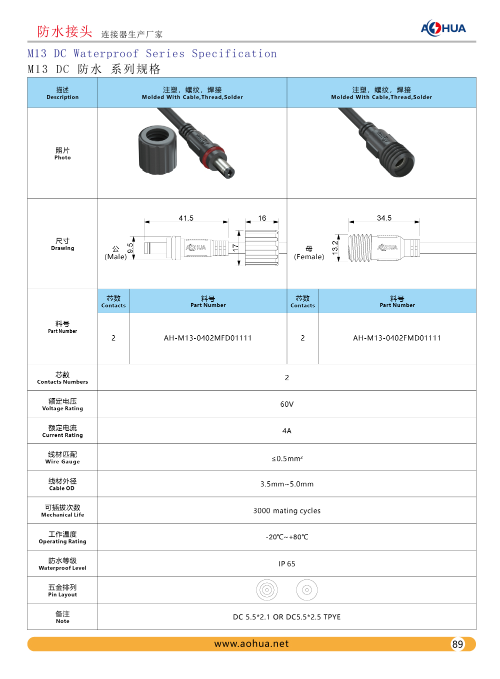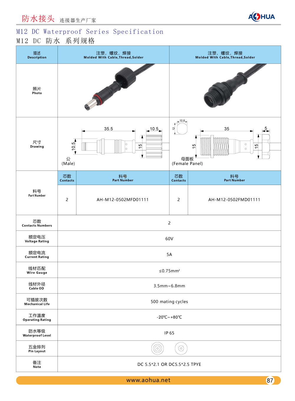 DC Waterproof M13 M14 and Design Drawing,Specification and Product Display
