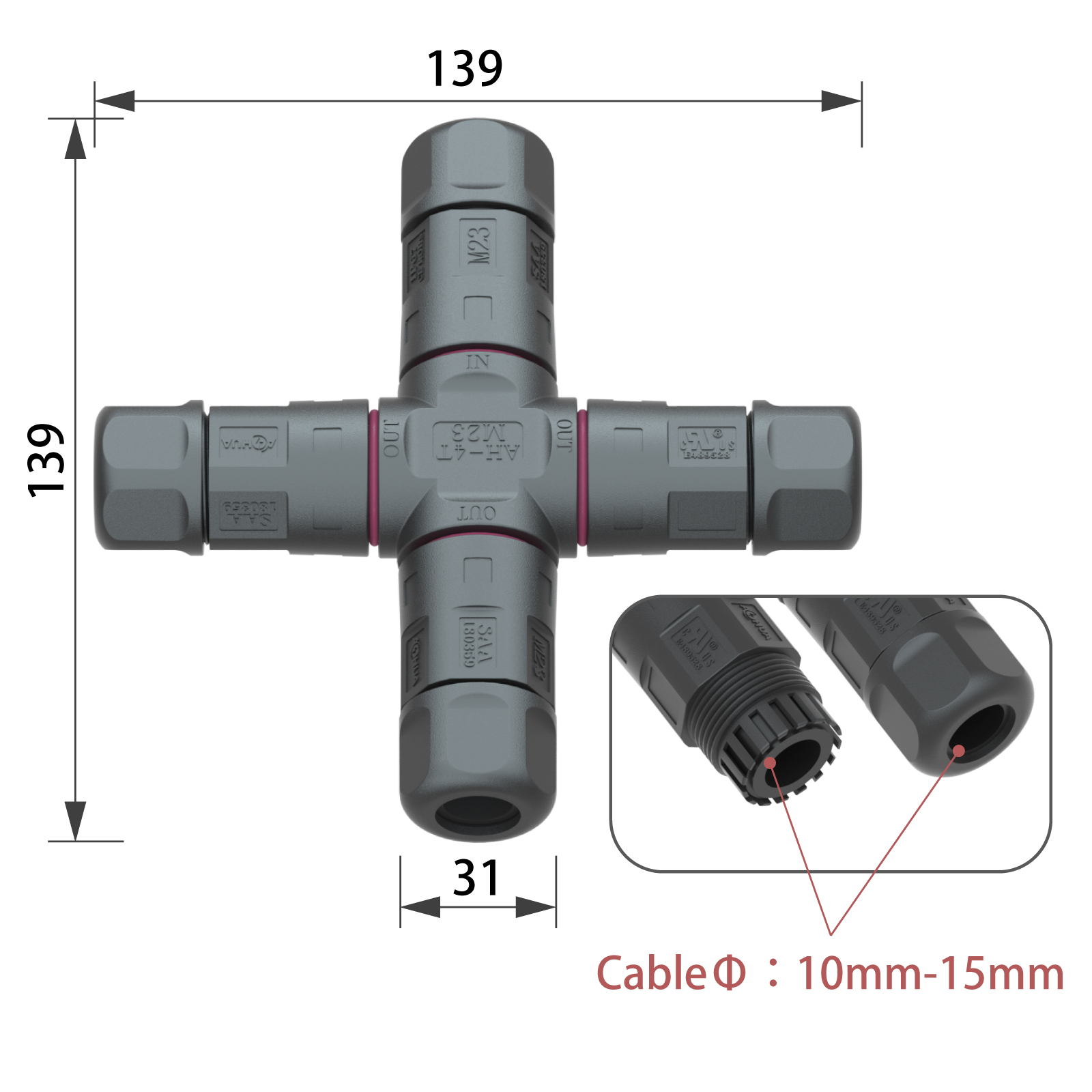 4-Ways Splitter connector Screw Fixing type M20 M23