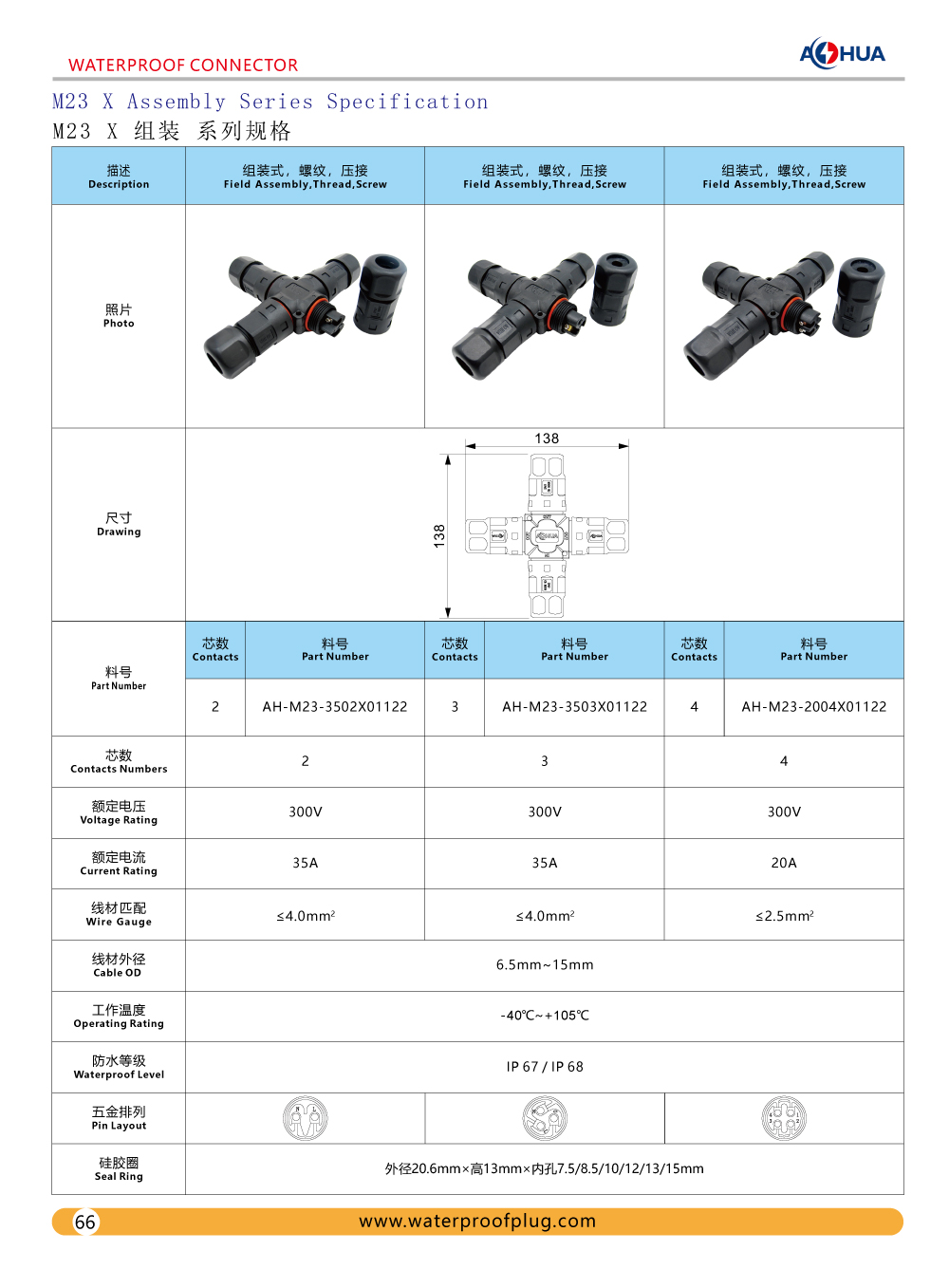 4. The operating rating is -40ºC ~ +105ºC,and the Waterproof rate is IP67/68.