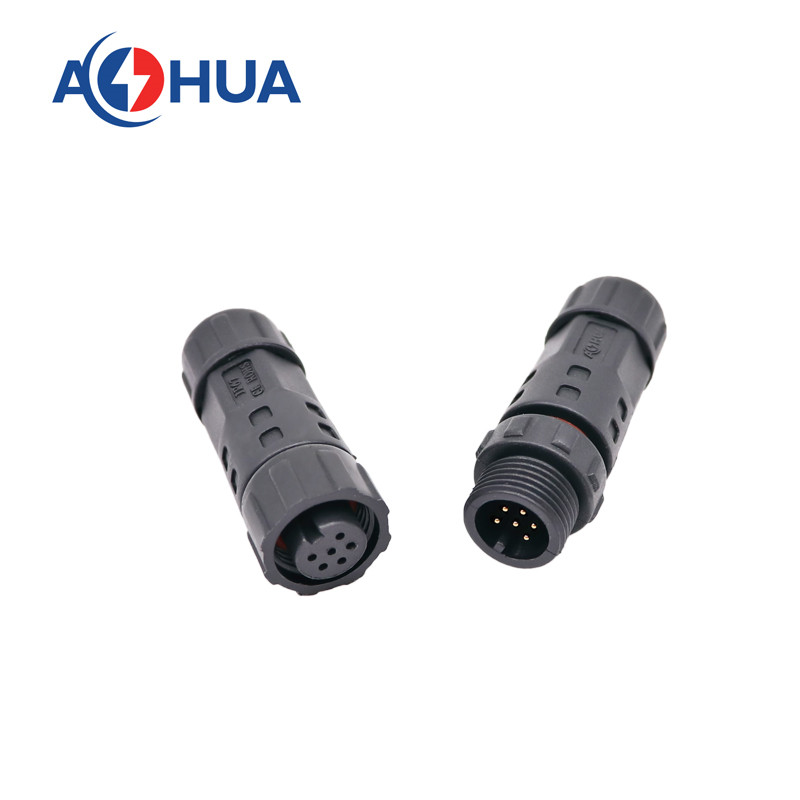 AOHUA sales M12 waterproof cable connector with dust cap 6pin 22awg cable wire joint IP67 waterproof electrical wire male female plug
