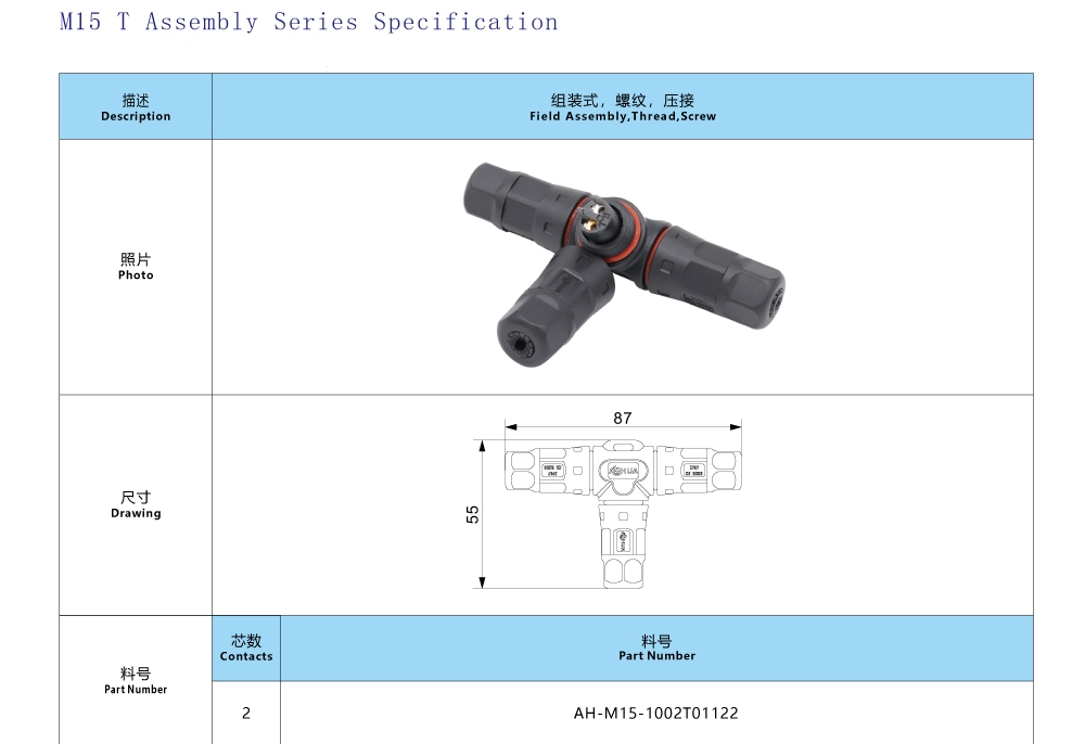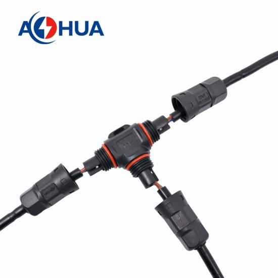 AOHUA Screw Fixing T Type M15 3 Way Nylon Adapter Waterproof Connector Cable Plug