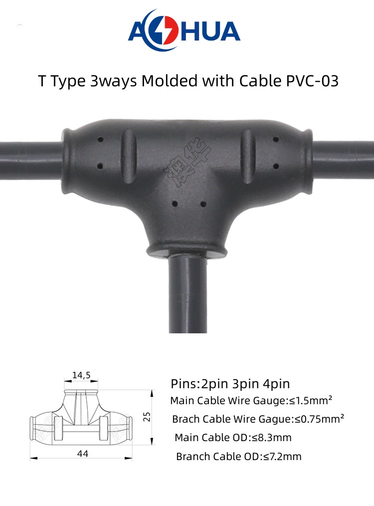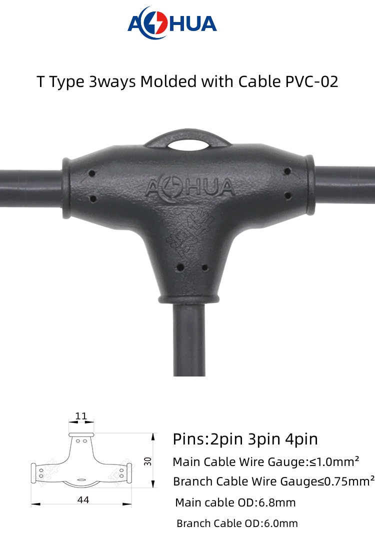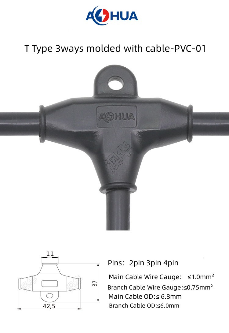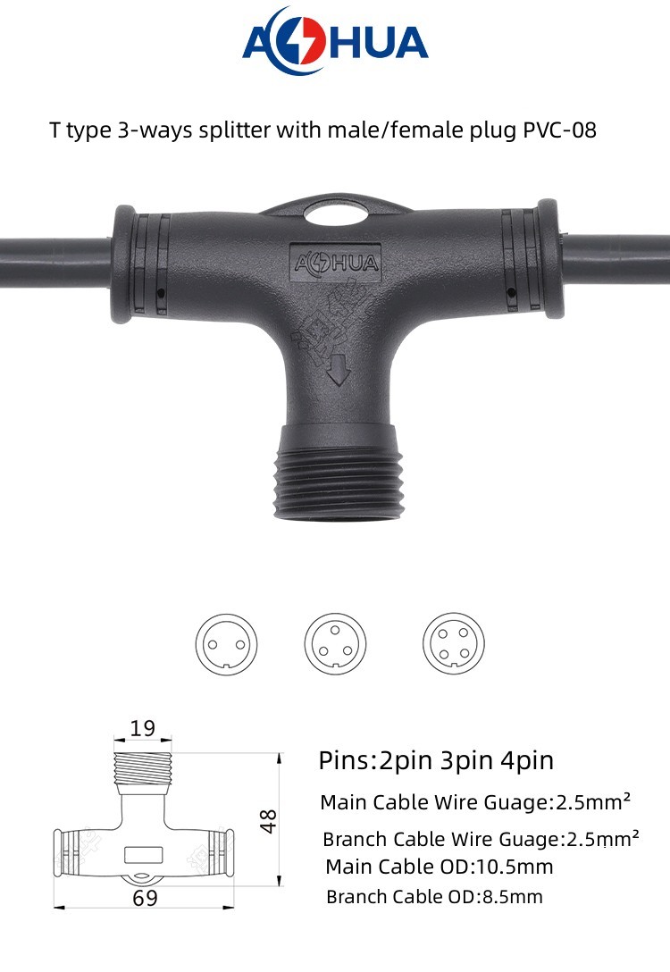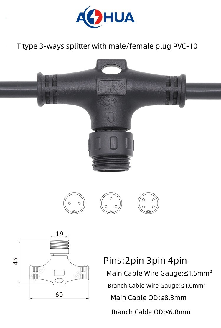1. PVC Splitter 3-ways t type waterproof connector are divided into two types:
