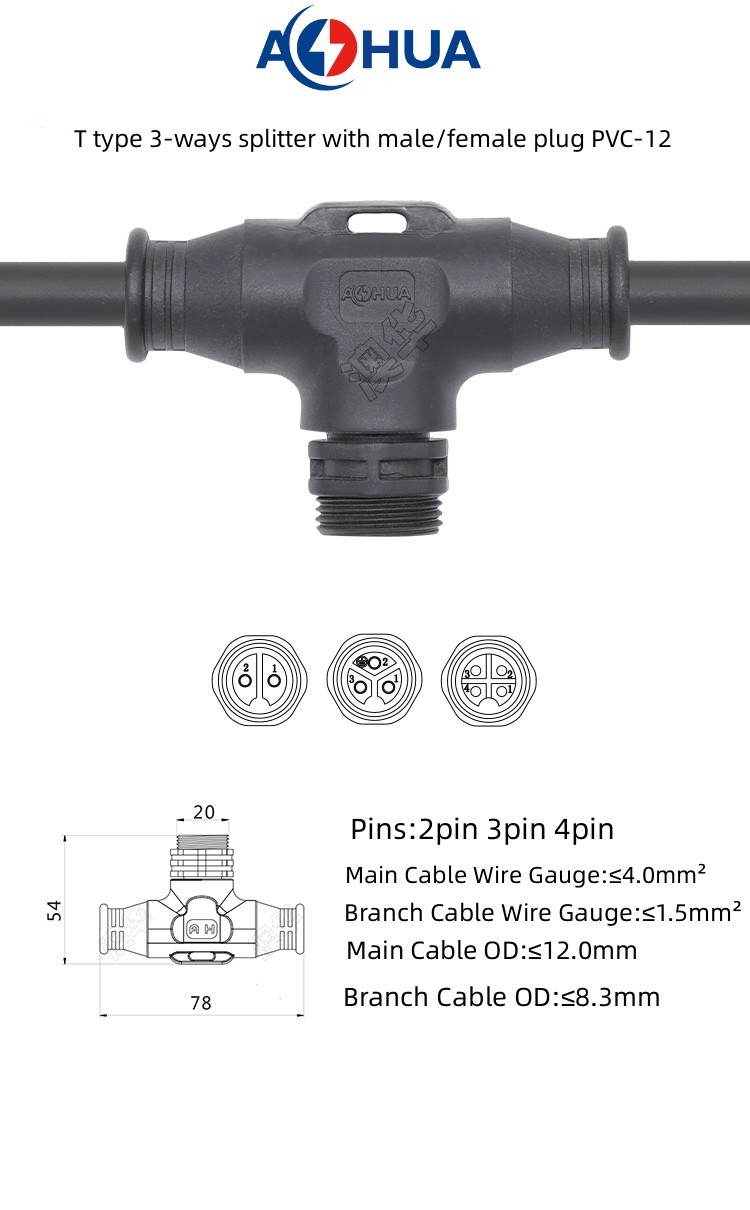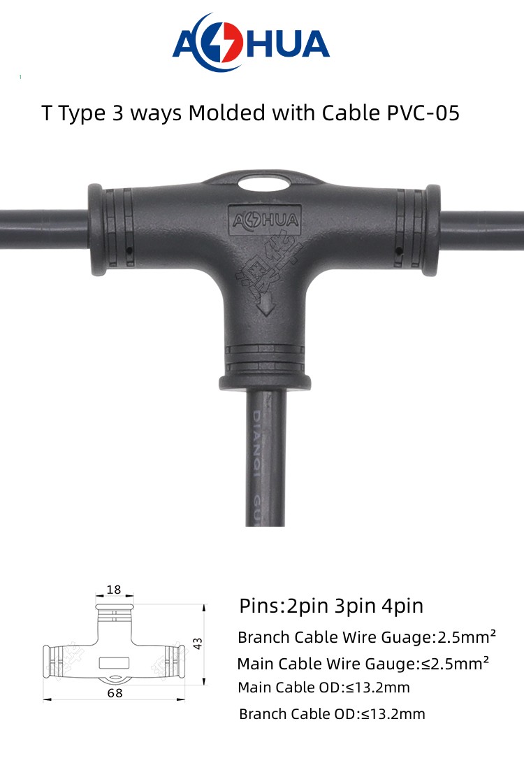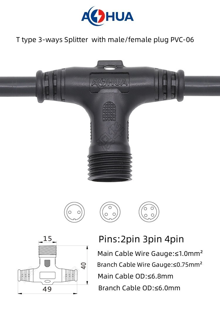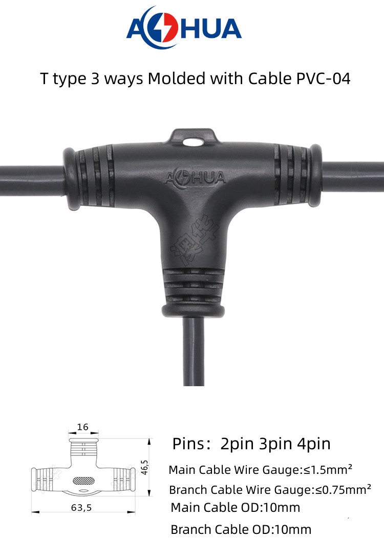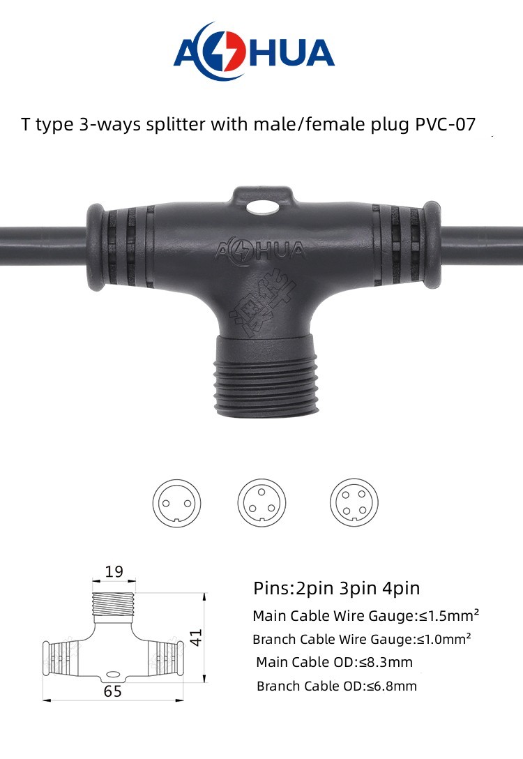 1. PVC Splitter 3-ways t type waterproof connector are divided into two types: