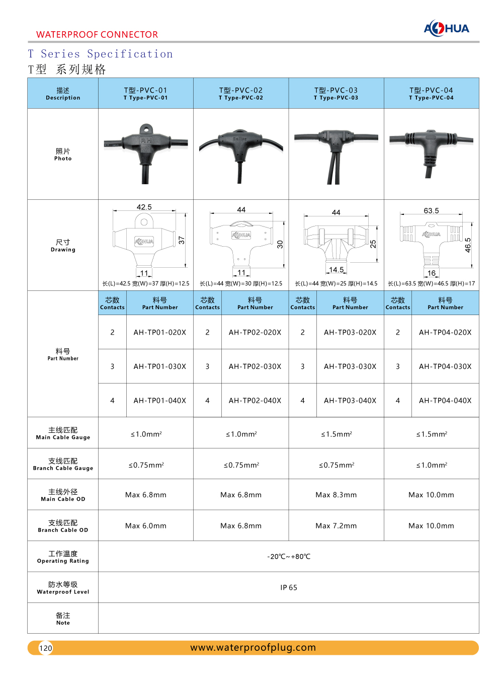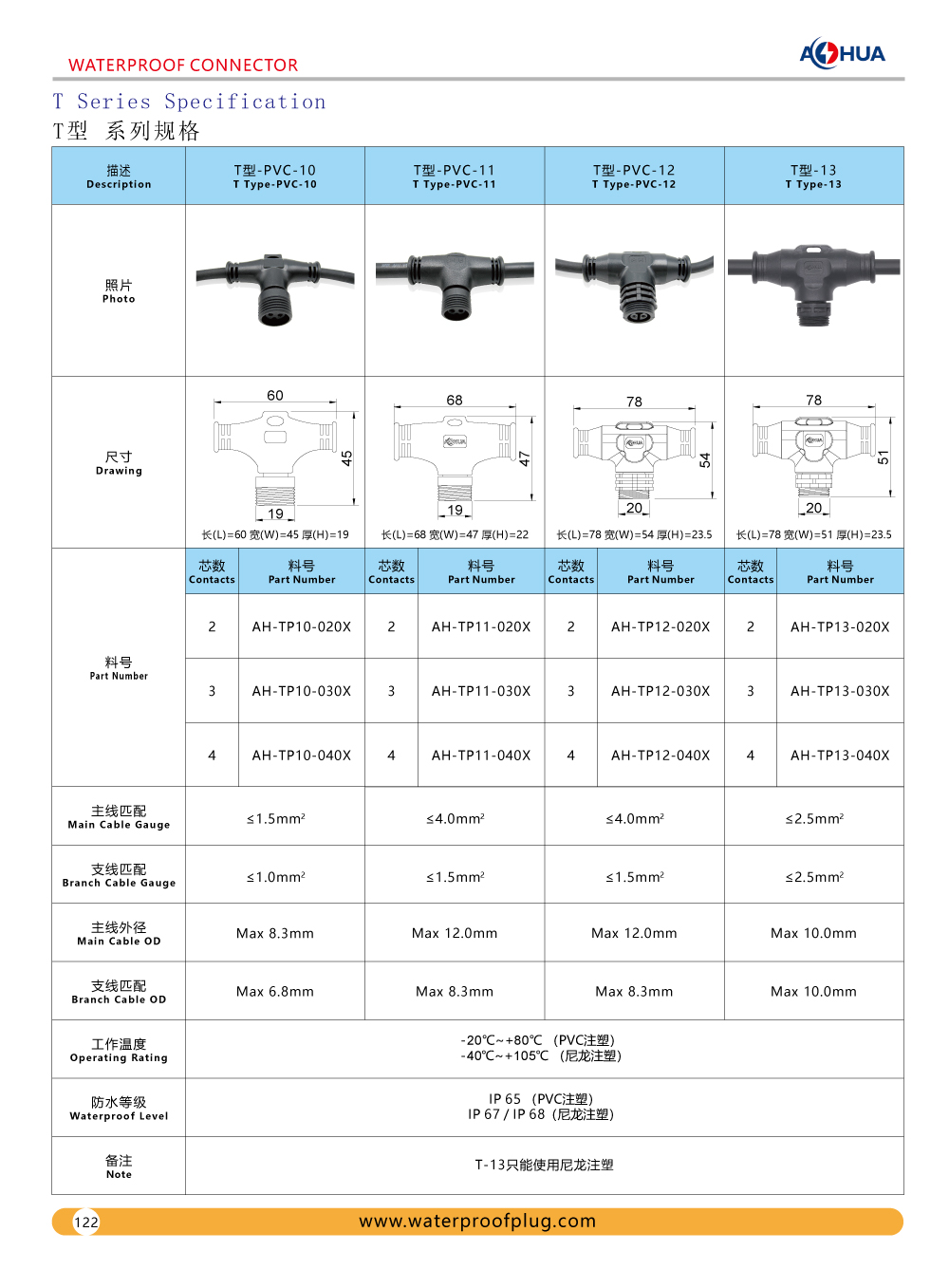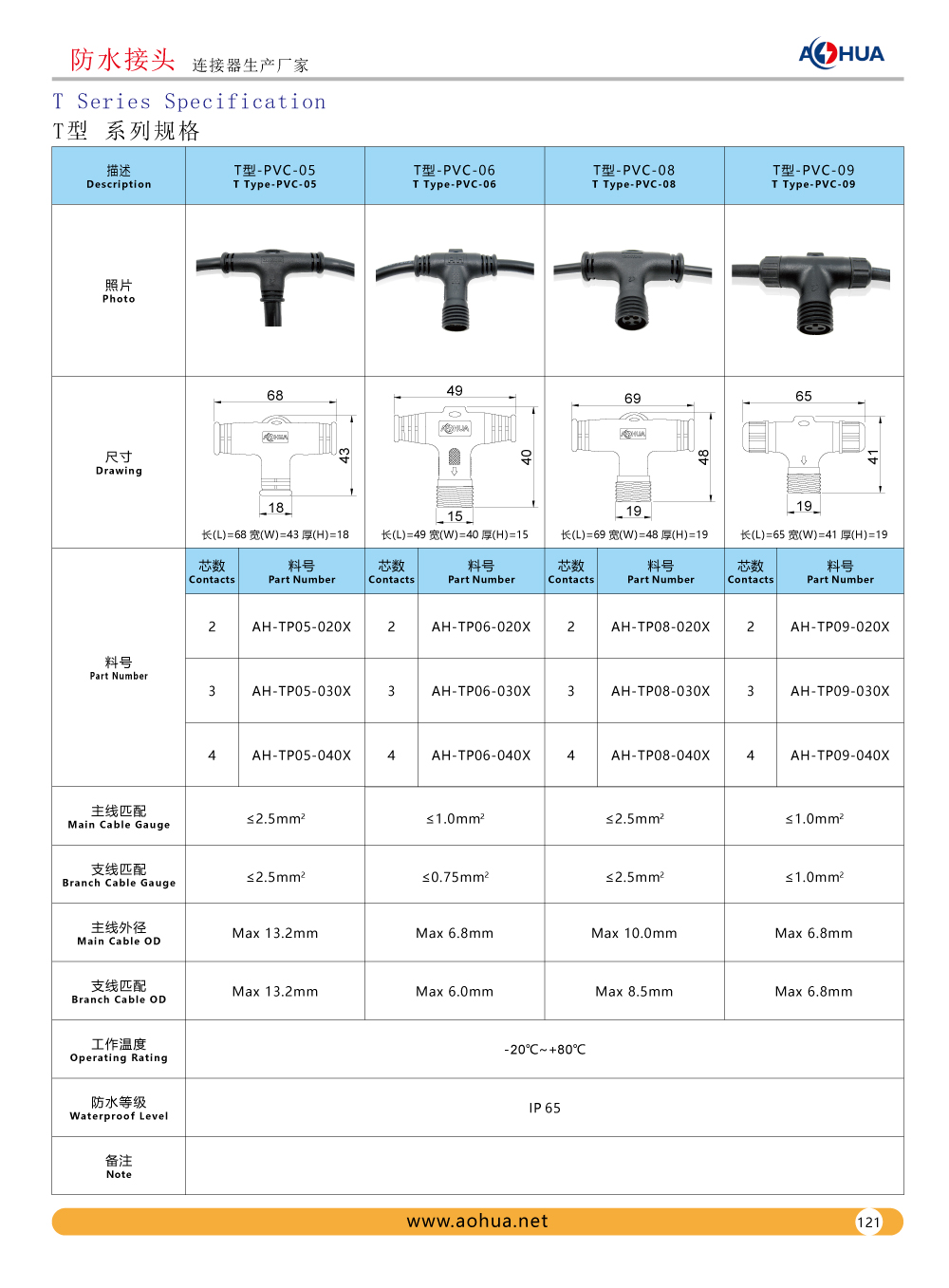 The first type isT-PVC-01,T-PVC-02,T-PVC-03,T-PVC-04,T-PVC-05,T connector over molded with cable,the terminal with bare wire or male/female plug.