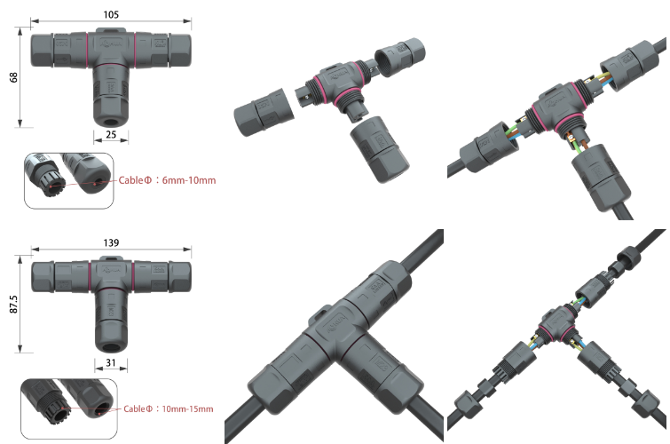 M20/M23 Screw Fixing T Type Waterproof Connector