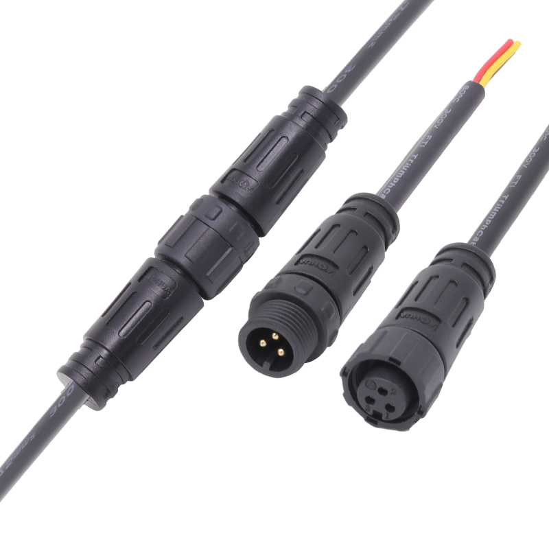 M12 pre-wire electrical plug with cable,it is nylon injection molded male and female waterproof cable connector.