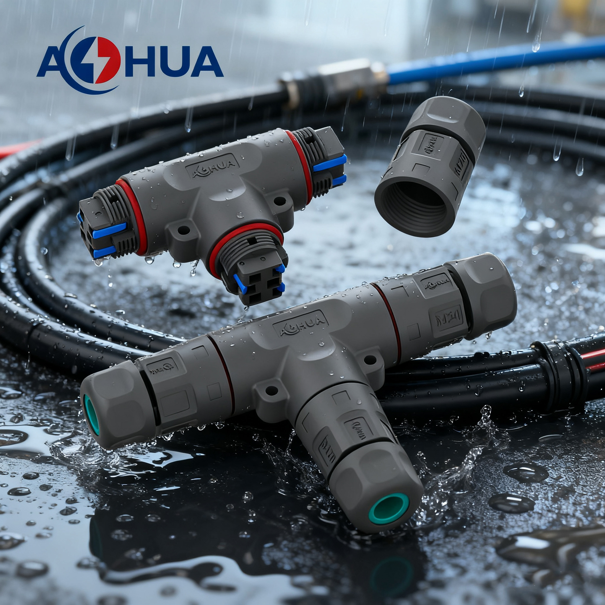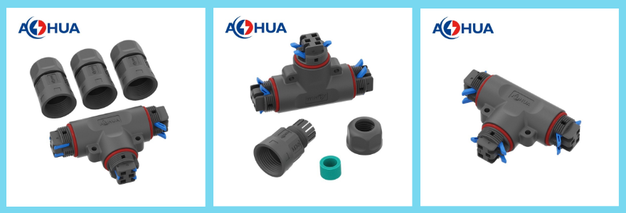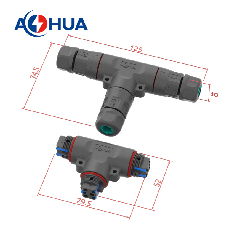 The M20 3-PIN T-Type Three Way Connector is a waterproof electrical connection solution specifically engineered for in dustrial environments.Featuring a T-shaped structure design, it supports three electrical connections,with an IP68 protection rating ensuring reliable operation inharsh conditions.