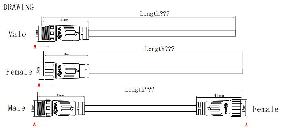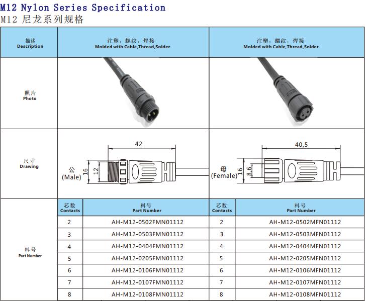 1. Nylon material connector pre-mold with PVC/rubber cable.