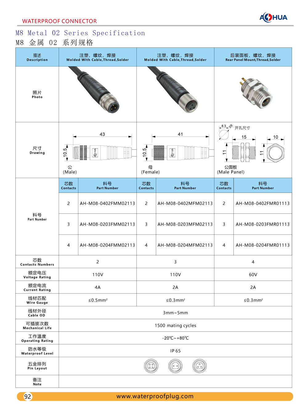 Let us show you Metal waterproof connector M08-01 M08-02 M12 M16 M19 here. Design Drawing, Specification and Product Display as below: