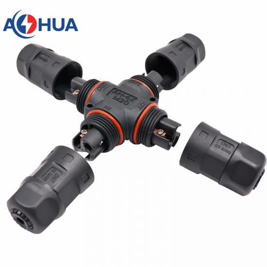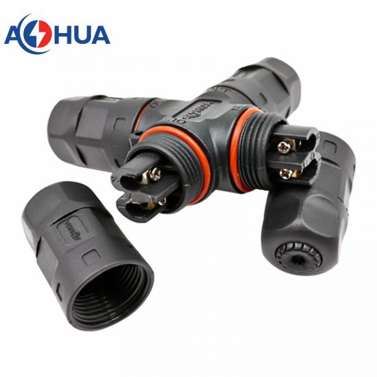 1 in 2 out T connector 2pin 3pin 4pin waterproof ,screw fixing type conductor