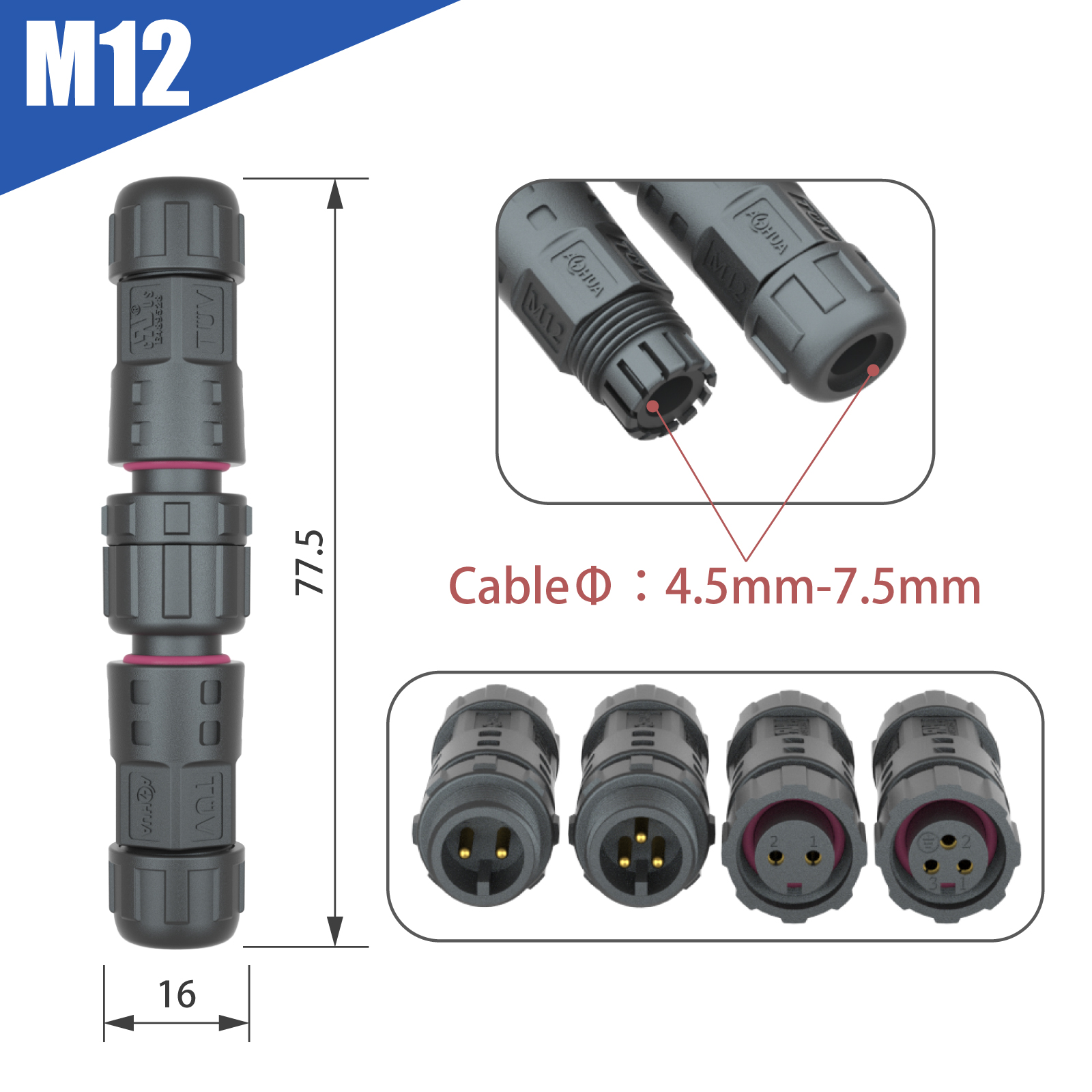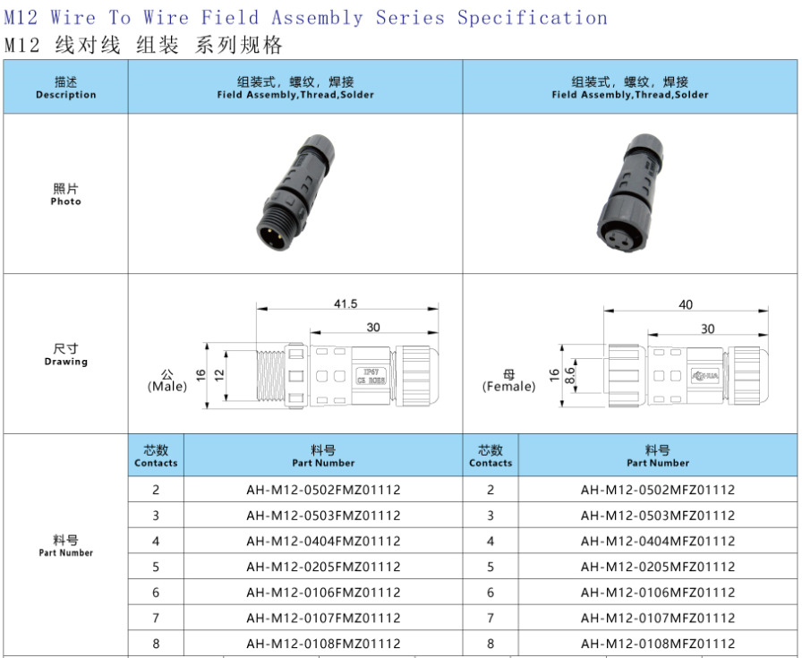 1.M12 is assembly waterproof cable plug which is without cable.