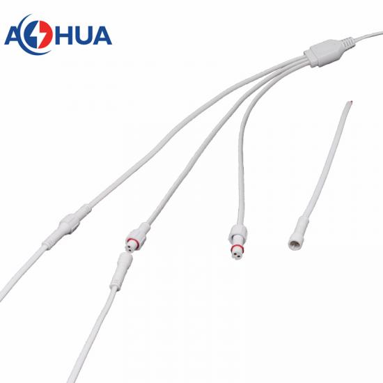 The YP03 multiple branch Y type waterproof cable connector. In this cable solutions, Y splitter are usually connectors with male and female connectors. Such as, the main cable will be molded with the female connector, the branch cables will be molded with male connectors. The wire size is 2*24AWG, the cable length is customized.