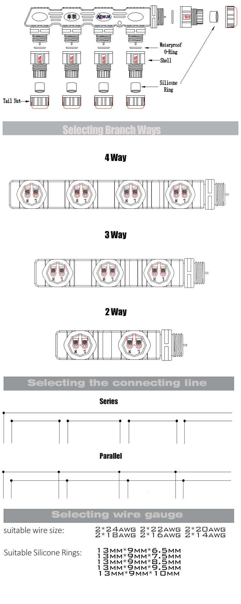 /Customized T Assembly Wire Connector 2 pin Spliiter 2 3 4 Branch Waterproof Connector