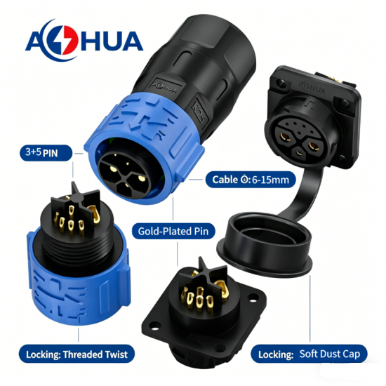 IP68 Waterproof Male Female 20A Cable Connector Thread Solder Type 2PIN 3PIN