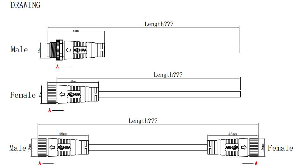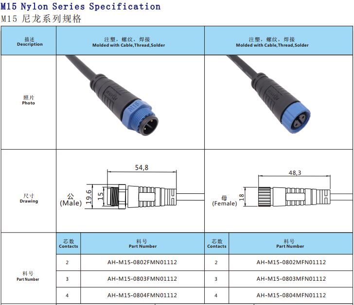 1. Nylon material: overmold with cable, solder type, 2, 3, 4, 5 pin for choices.