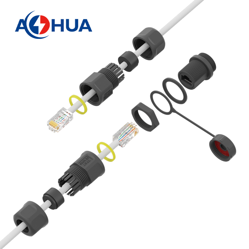 RJ45 Connector Waterproof RJ45 Connector 8P8C 24AWG Electrical Panel Connector Cat5 Cat6