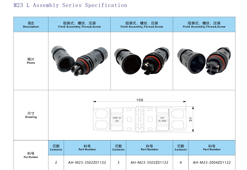 M23 3pin Waterproof connector 3G2.5 M23 3PIN Waterproof Connector