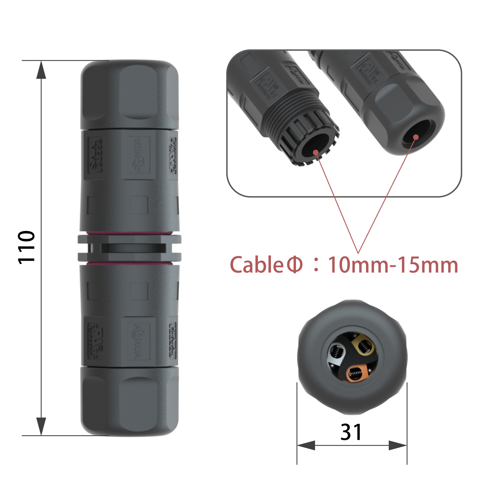 M23 3pin T Waterproof connector Street lighting led 3 wire connector plug