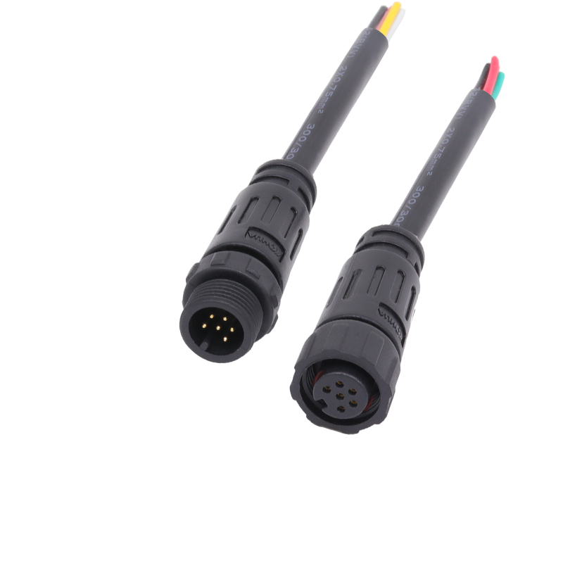 M12 pre-wire electrical plug with cable,it is nylon injection molded male and female waterproof cable connector.