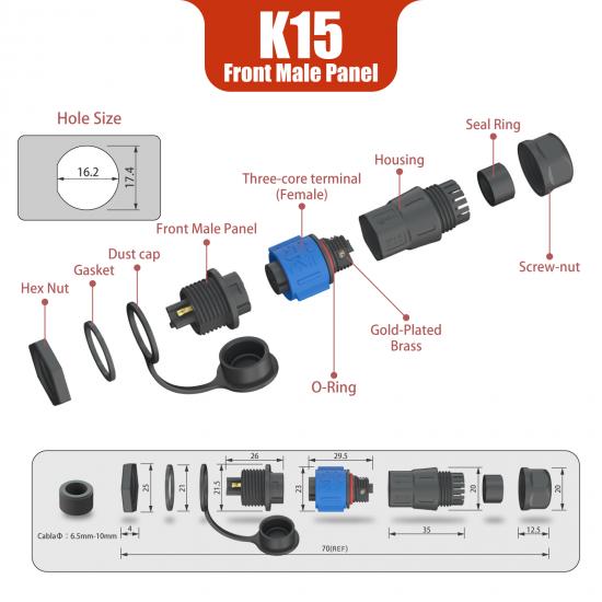 K15 Assembly Panel Mount Cable Connector 2 3 4 Pin