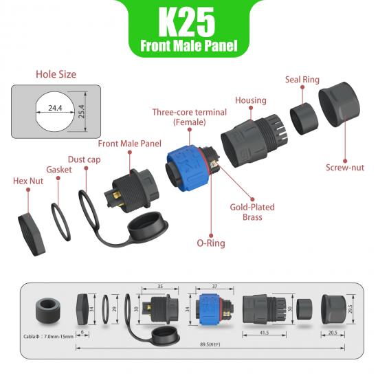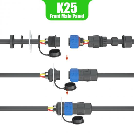 K25 Assembly Panel Mount Cable Connector 2 3 4 Pin