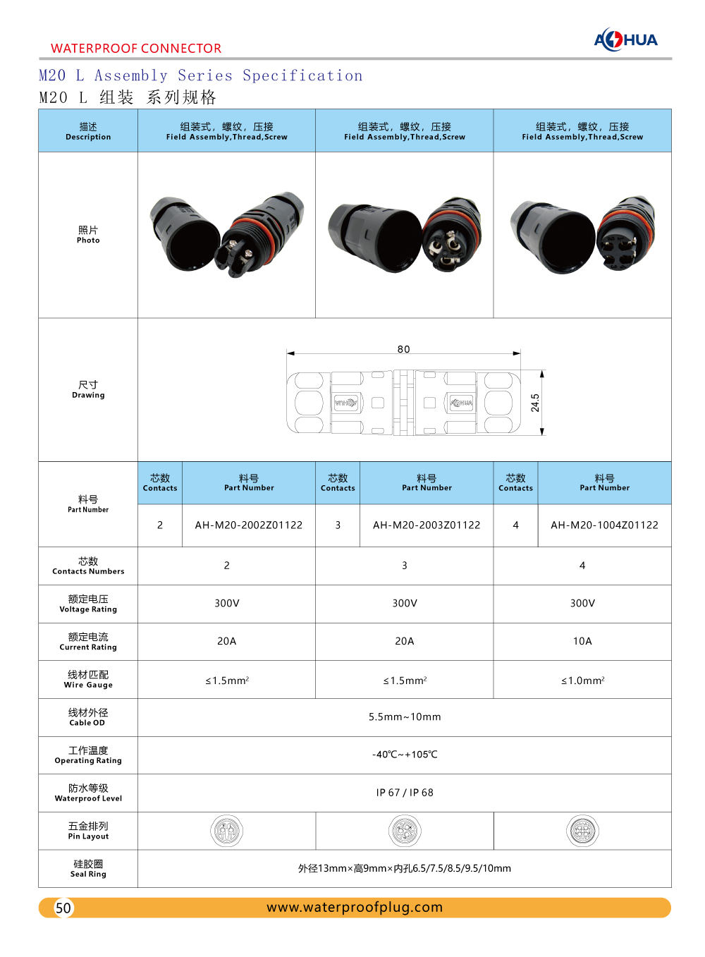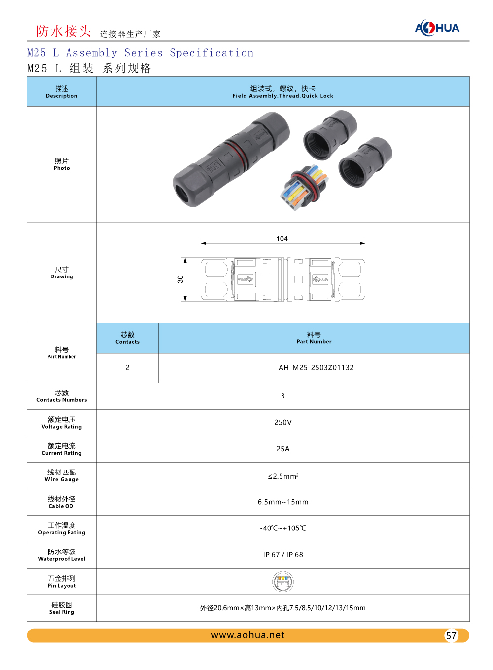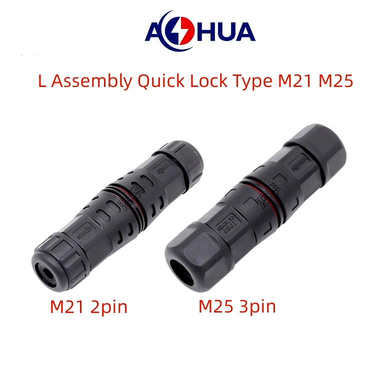 1.L Type Series waterproof connectors including M15 M16 2pin 3pin for choices.M20 and M23 2pin 3 pin 4pin you can choose from.Quick Lock Series M21 and M25 are olny 2 pin.