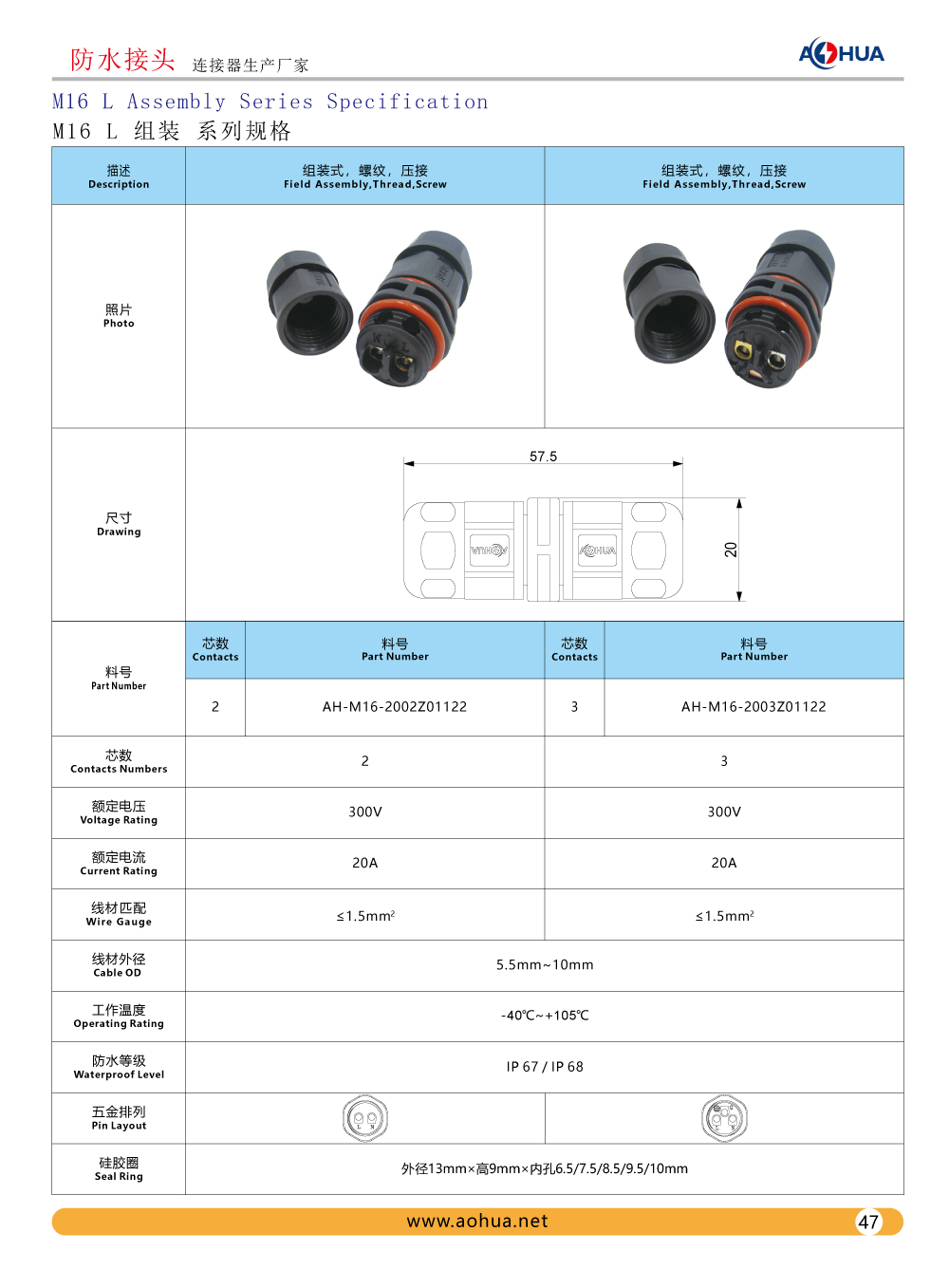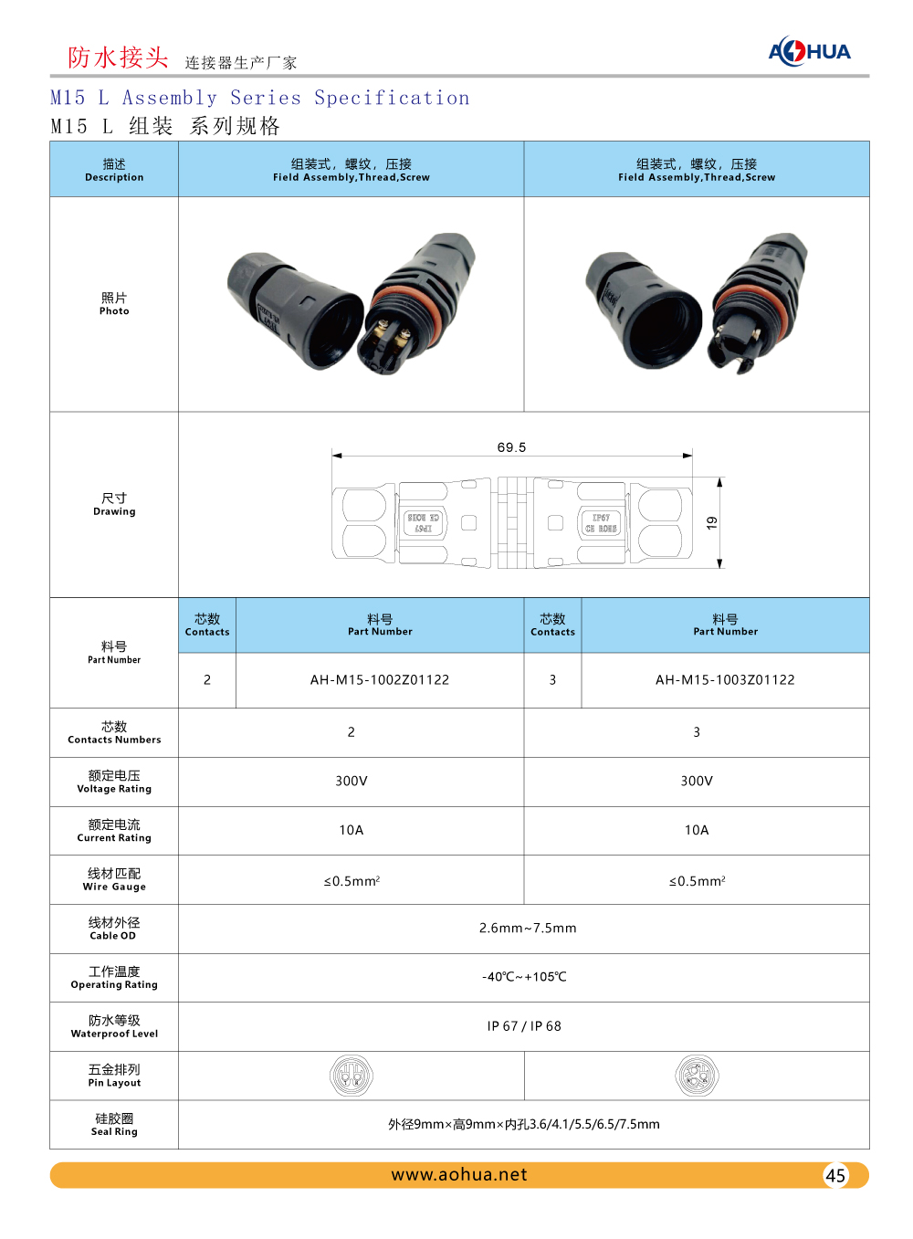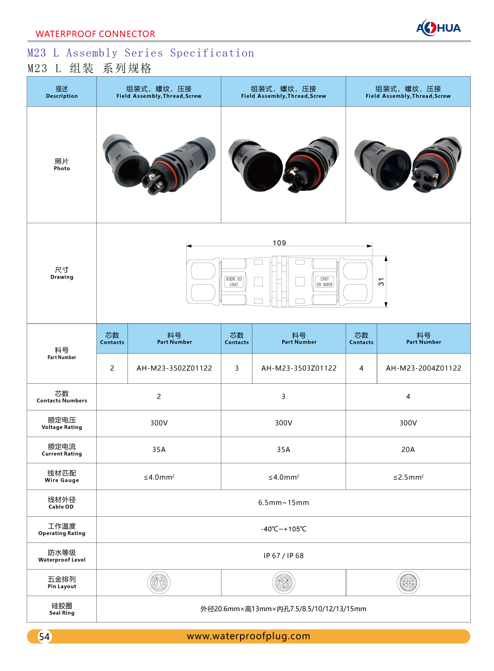 1.L Type Series waterproof connectors including M15 M16 2pin 3pin for choices.M20 and M23 2pin 3 pin 4pin you can choose from.Quick Lock Series M21 and M25 are olny 2 pin.