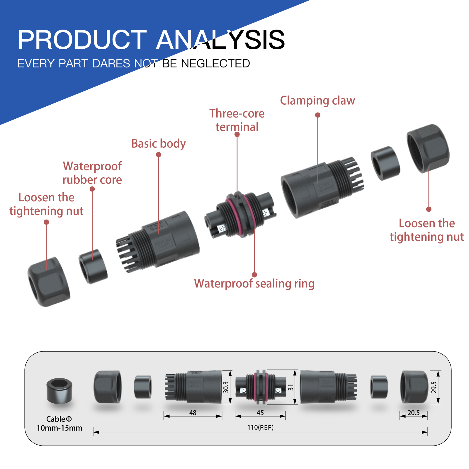 2.Connection methods:Screw fixing type and Quick lock type. Install easily, use easily, and save time.Screw fixing type installation :Only need a screwdriver.Quick lock type:no need any tools,can install by hand.