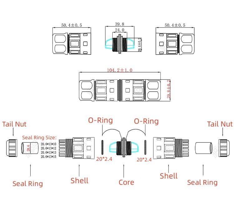 Seal Ring and O-ring are made of rubber. Excellent waterproof effect, oxidation resist.